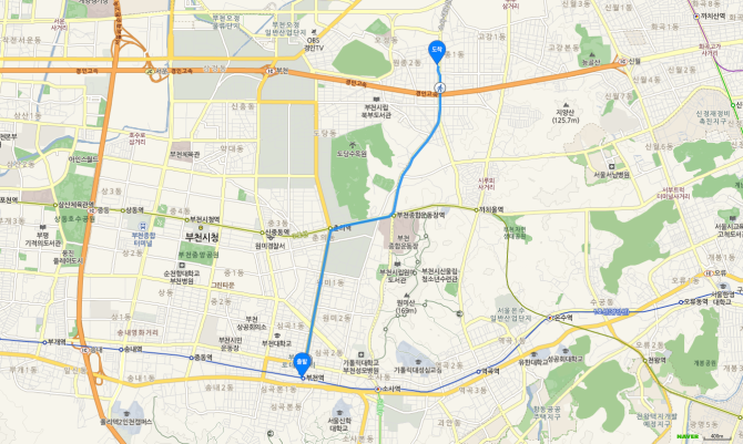 부천 북부역 하차 후 75번 버스 오시는 길